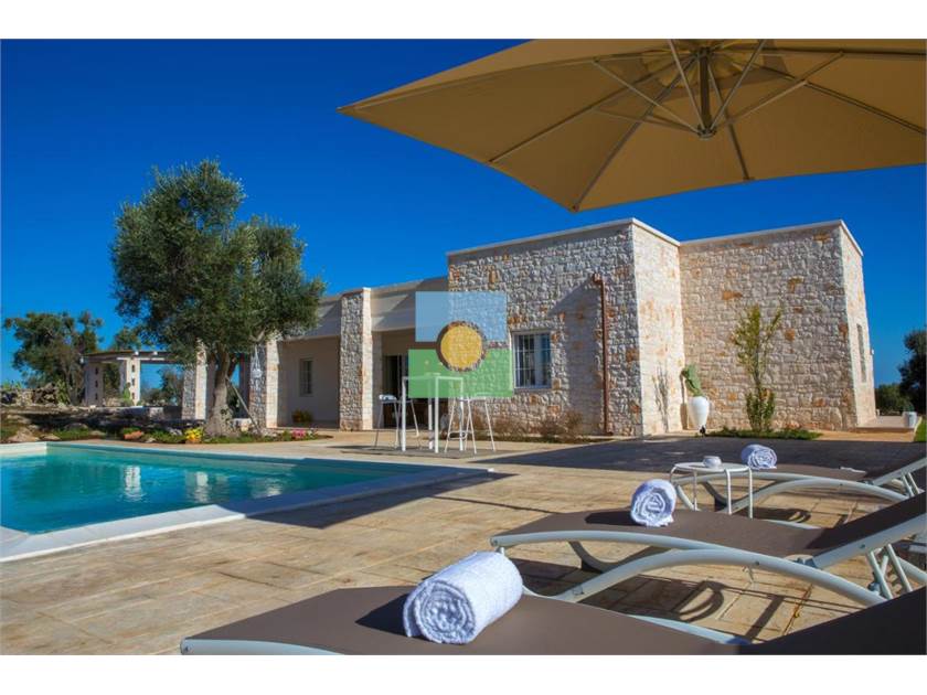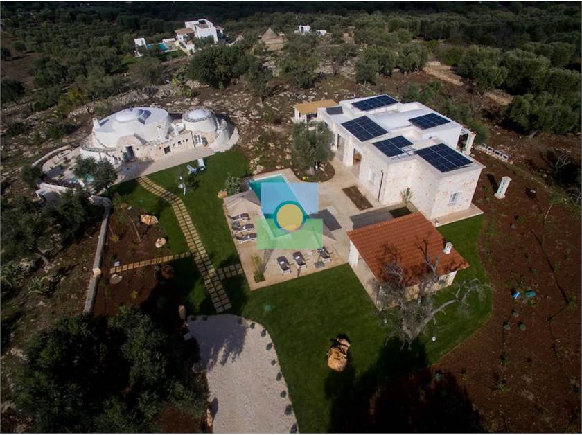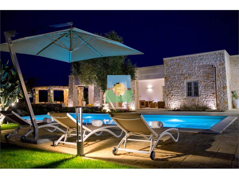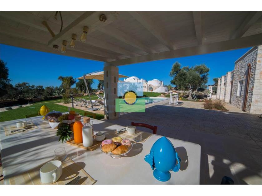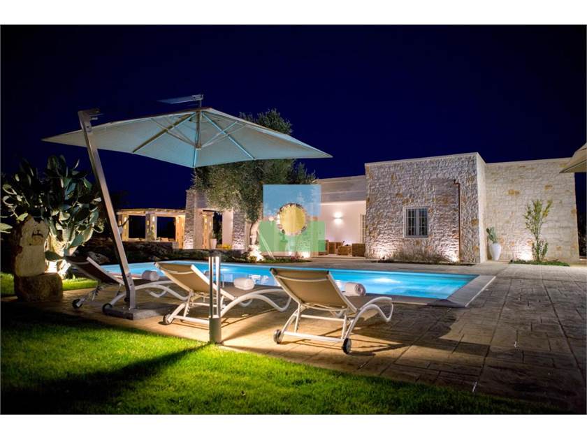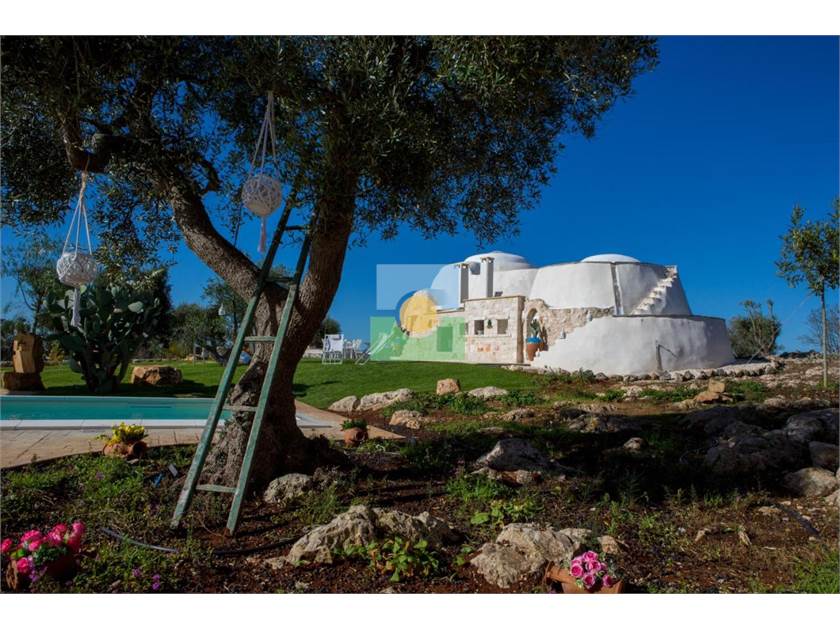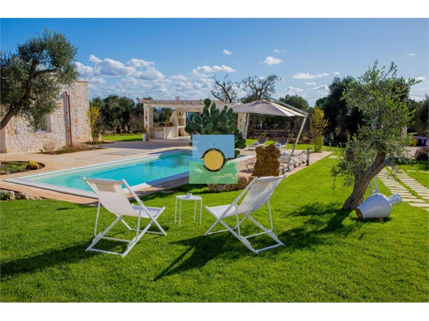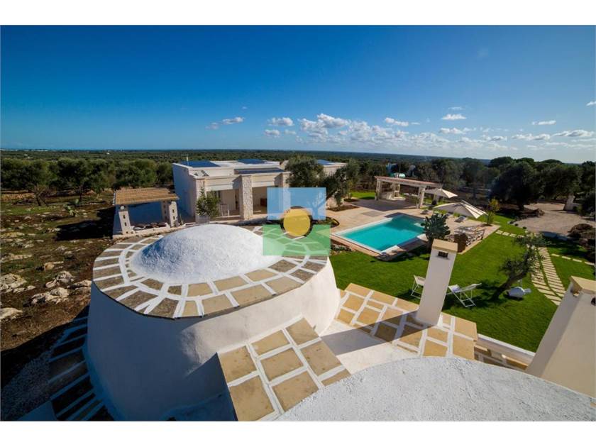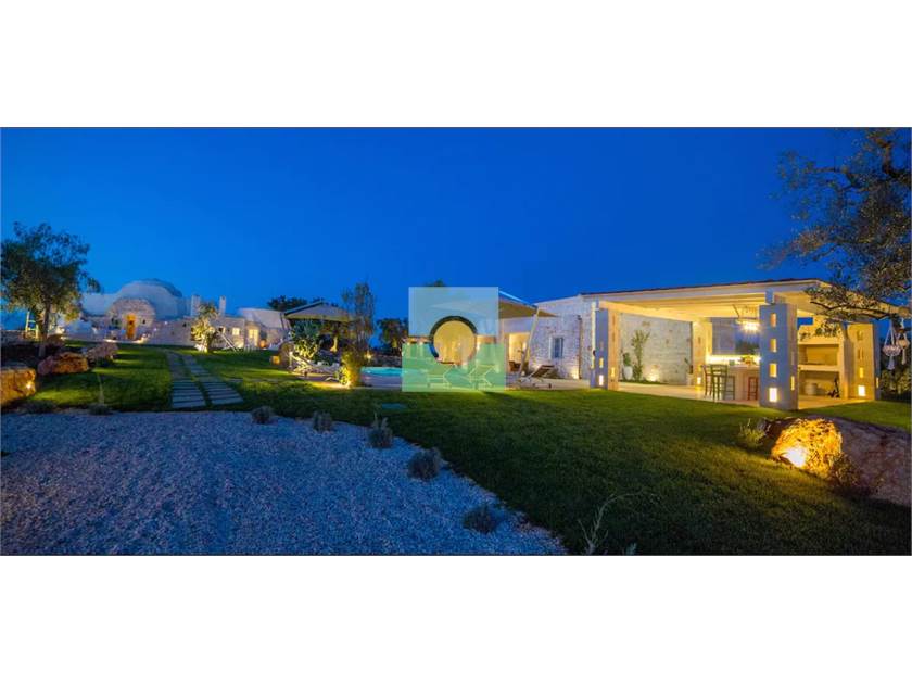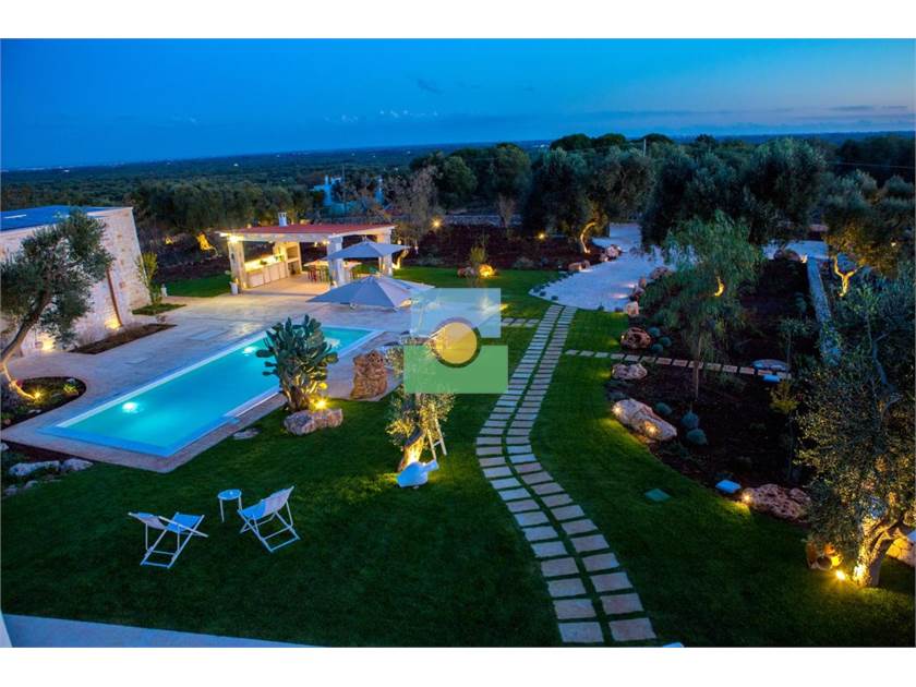 La propriété s'étend sur une superficie d'environ 15 000 m2 pleine d'oliviers séculaires et d'arbres fruitiers.Le jardin entoure la piscine reliant la villa à l'ancien trullo sarrasin.