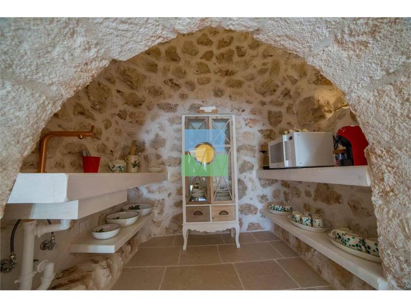 -Un ancien trullo sarrasin, pouvant accueillir jusqu'à 4 personnes, équipé d'une chambre double, séjour avec niche avec lit, salle de bain.