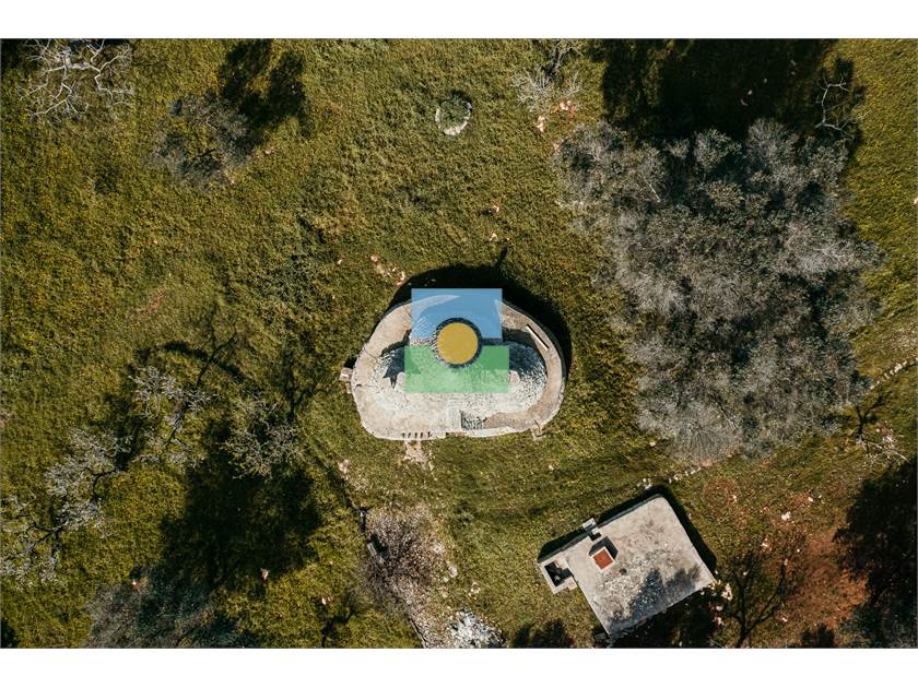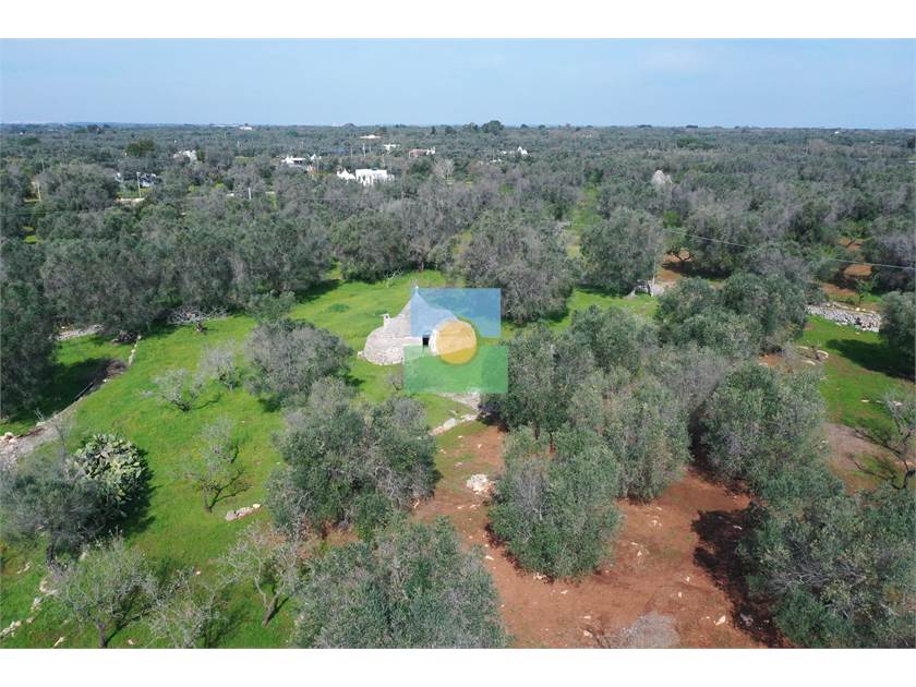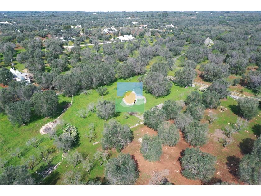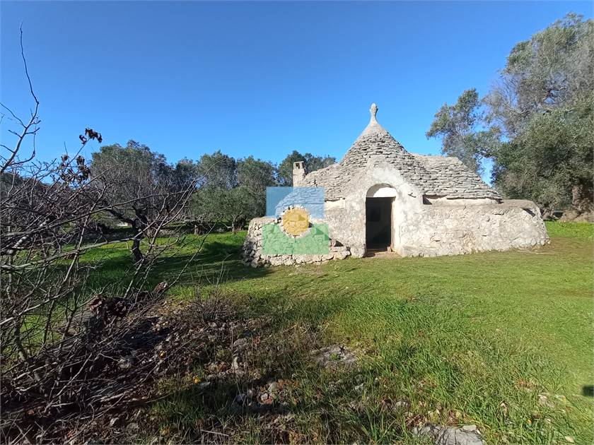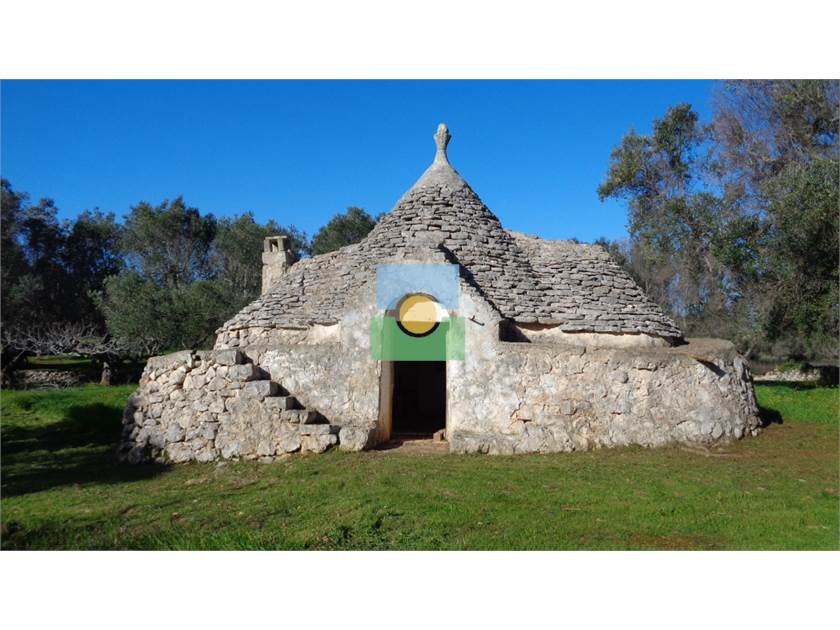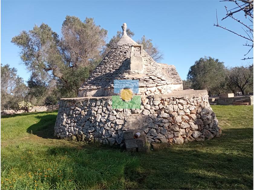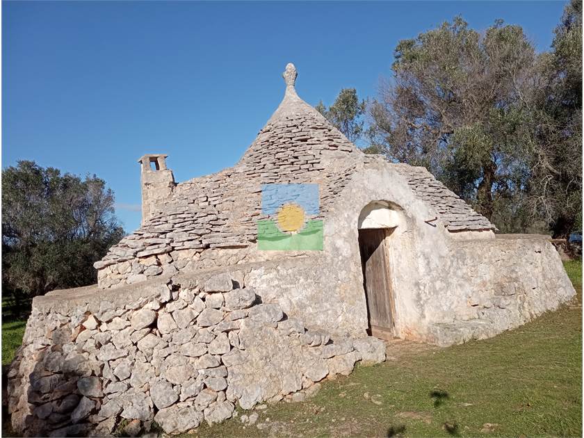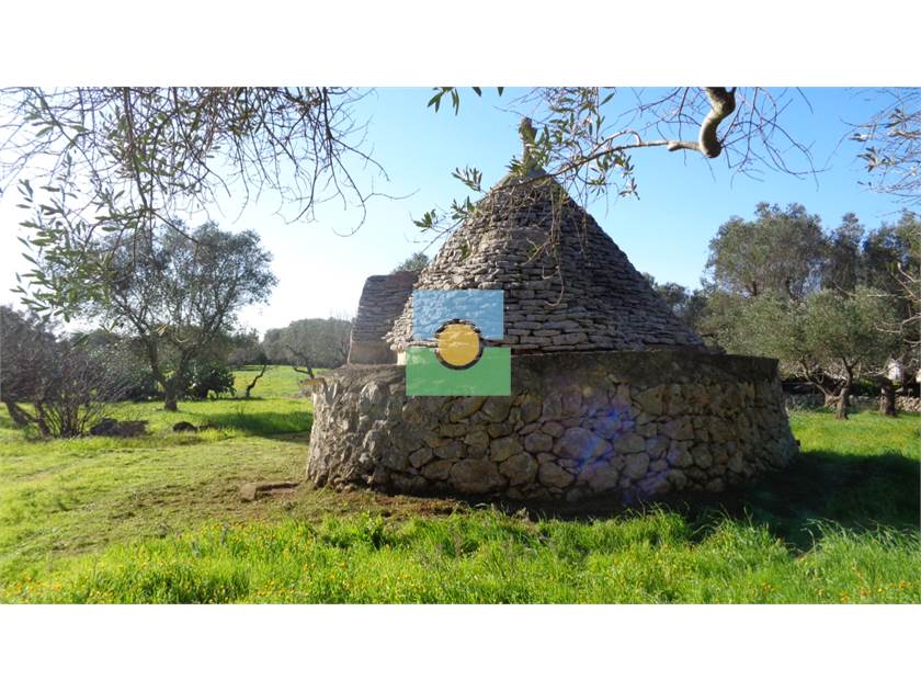 Le trullo à 3 cônes est composé d'une cloche centrale et de 2 alcôves dont une avec cheminée, le terrain environnant est d'environ 8300 m2.