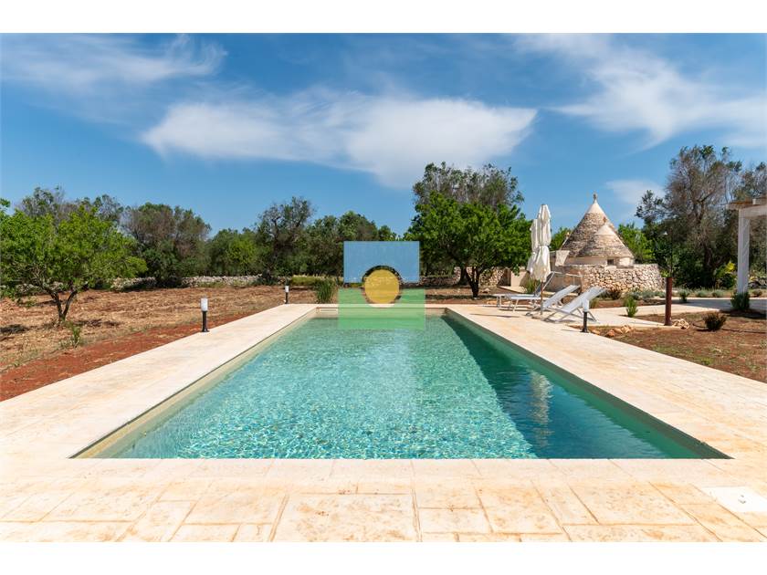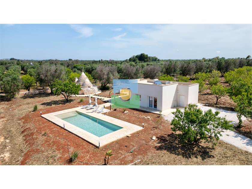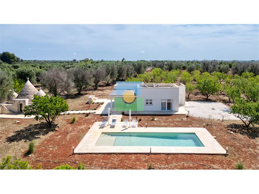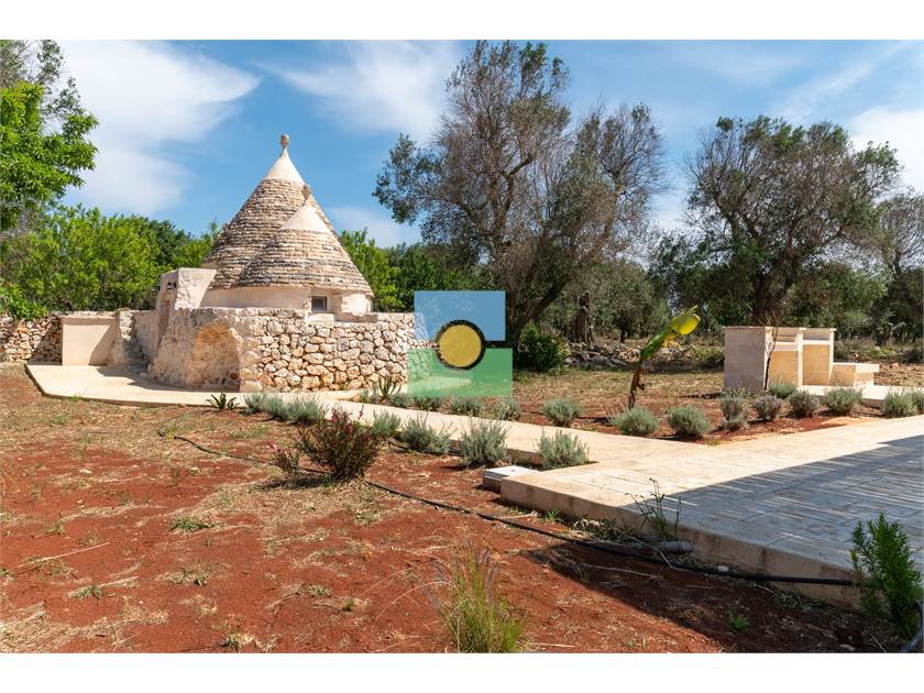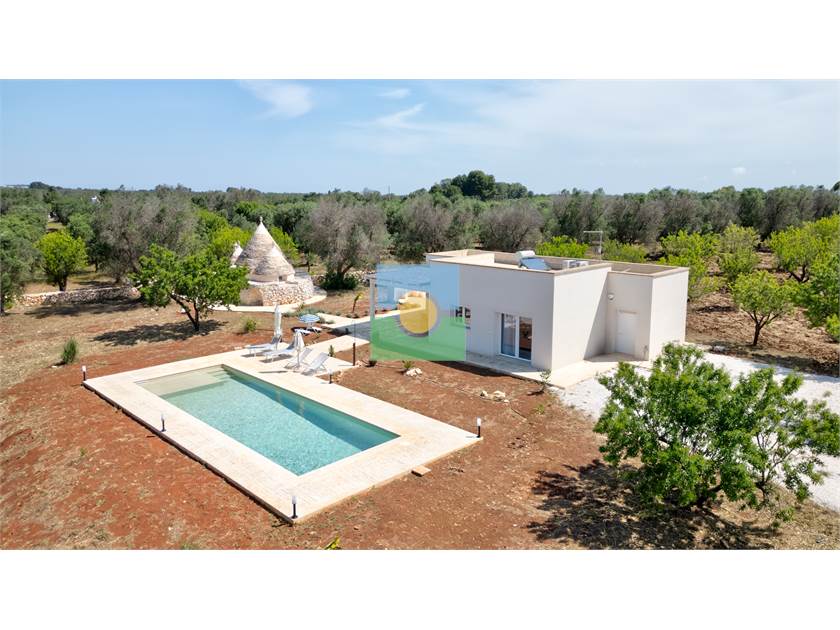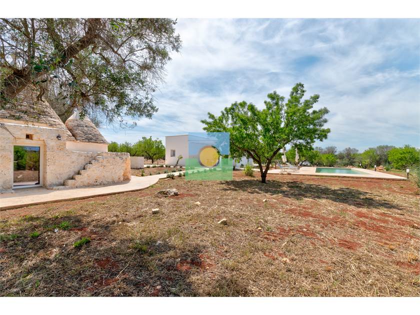 La villa è situata su un terreno di 12.000 mq ed è composta da lamia e trullo, in quest'ultimo troverete una depandance , mentre nella lamia un salone con cucina a vista ed altre due camere da letto e due bagni.