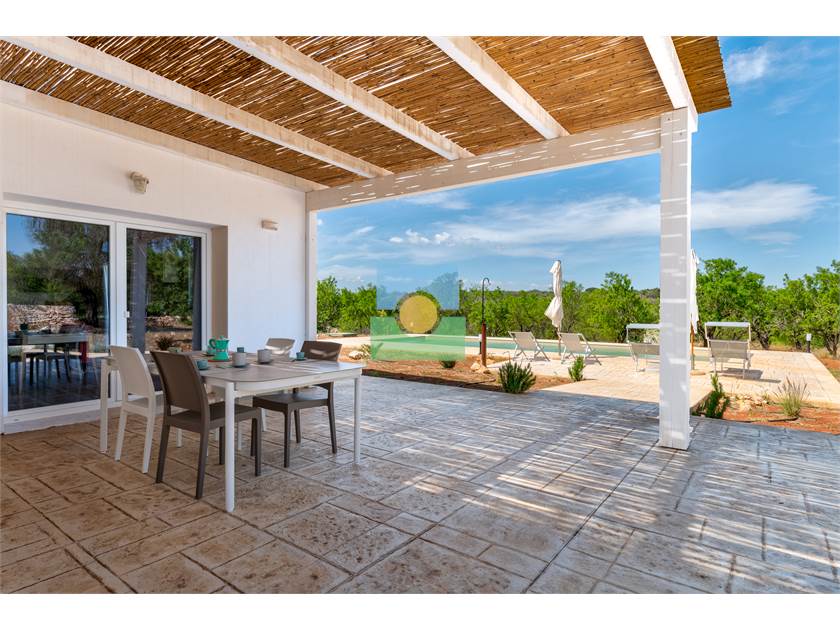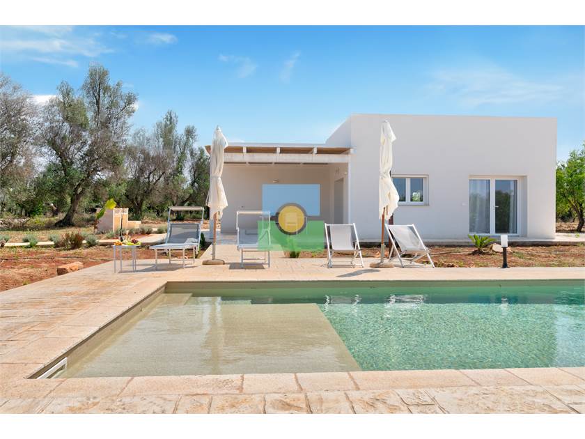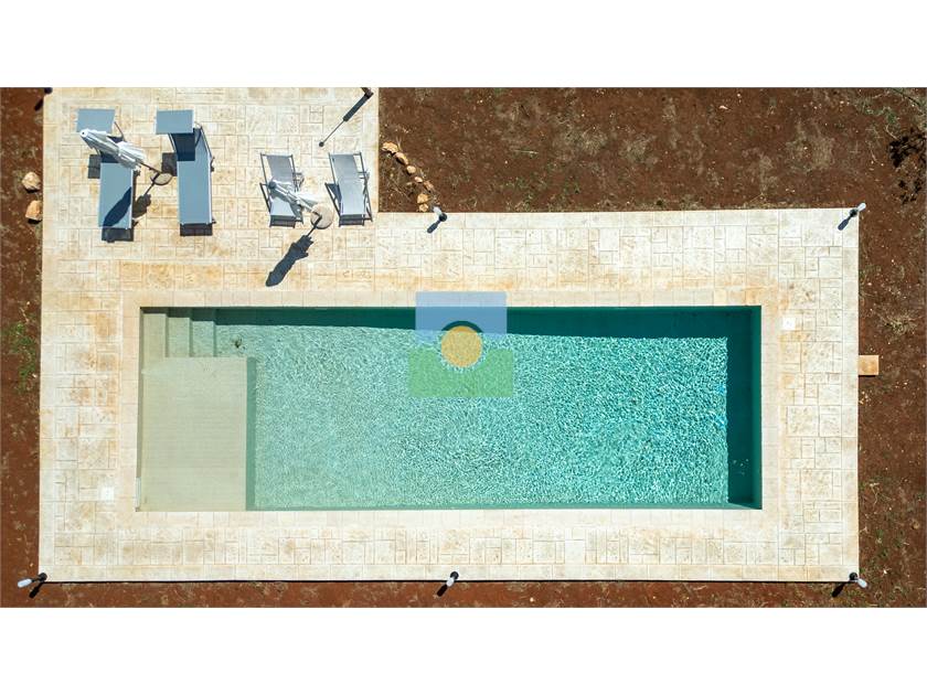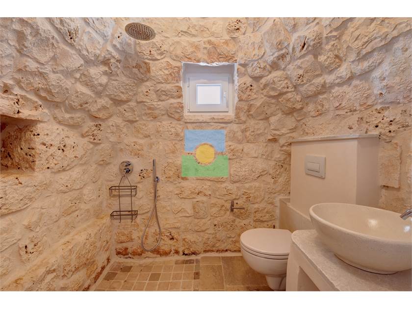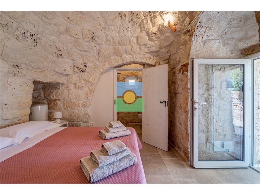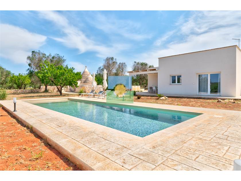 La villa è situata su un terreno di 12.000 mq ed è composta da lamia e trullo, in quest'ultimo troverete una depandance , mentre nella lamia un salone con cucina a vista ed altre due camere da letto e due bagni.