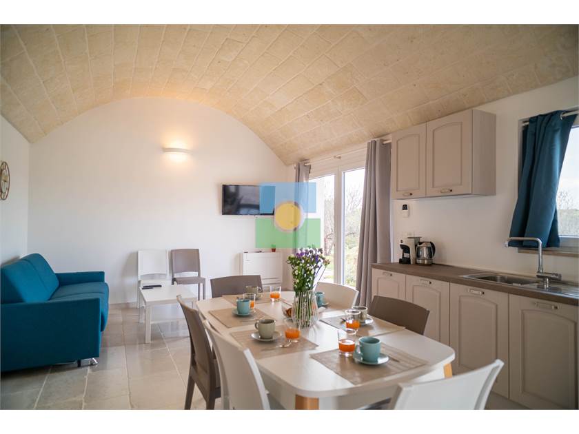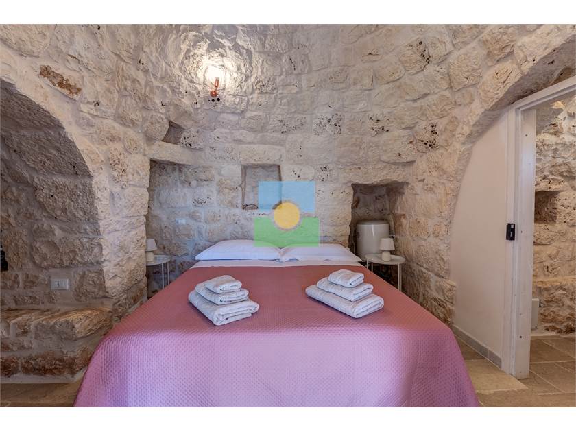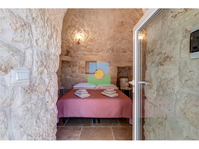 Questo trullo con lamie annessi unisce il fascino della tradizione pugliese al comfort moderno. Gli interni in pietra, i soffitti a volta e i dettagli originali sono stati sapientemente valorizzati, creando un ambiente caldo e accogliente. Il grande giardino, garantisce privacy assoluta e relax in totale armonia con la natura.