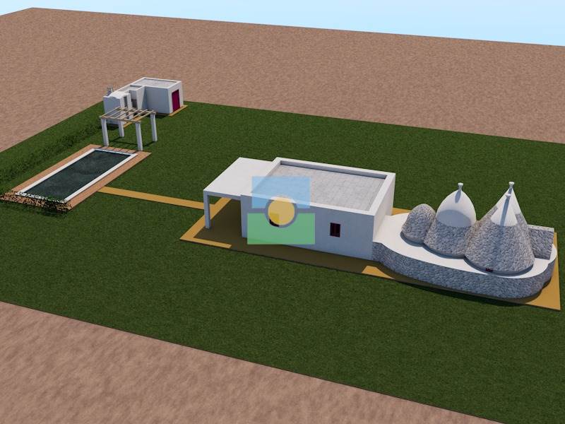 Il progetto prevede la possibilità di realizzare un ampliamento e ristrutturazione del trullo per una superficie totale di 90 mq , veranda ,piscina di 40 mq, pergolato in legno, deposito, locale tecnico, forno con annesso barbecue.